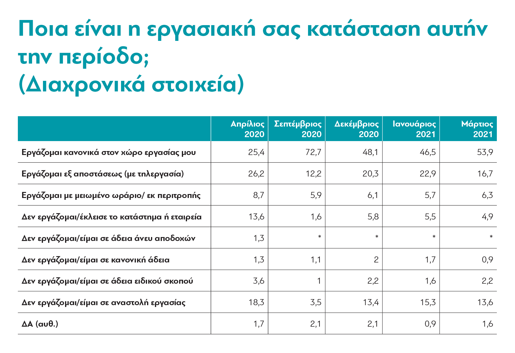 Τον Μάρτιο του 2021, πια, το 53,9% εξακολουθούν να εργάζονται κανονικά.
