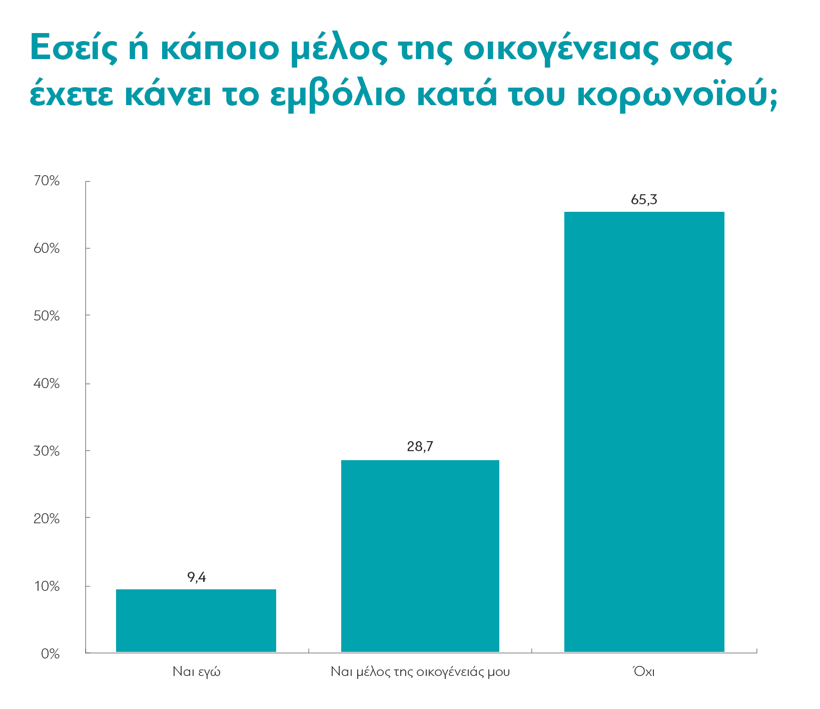 Ένα 4,1%, πια, δηλώνουν πως έχουν προσβληθεί οι ίδιοι από τον ιό και ένα 8% πως έχει προσβληθεί κάποιο μέλος της οικογένειας τους. Σε αυτό το 8%, δε, ένα 9,2% δηλώνουν ότι το μέλος της οικογένειας που νόσησε, τελικά κατέληξε.