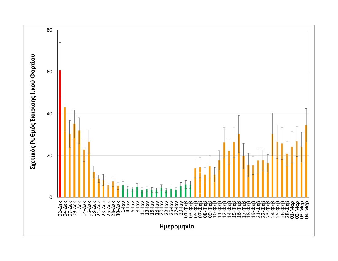 Η μέση τιμή των δύο πιο πρόσφατων μετρήσεων δηλαδή της Τετάρτης 03/03 και της Πέμπτης 04/03, είναι