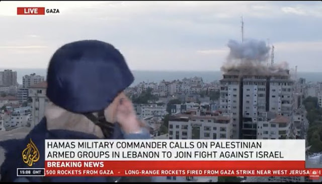 Ο φακός του Al Jazeera «έπιασε» τη στιγμή που η ανταποκρίτρια Youmna El Sayed μετέδιδε τις εξελίξεις τον βομβαρδισμό του «Πύργου της Παλαιστίνης» από τις ισραηλινές δυνάμεις…