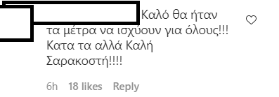 Η «κουβέντα» που τρέχει στο Instagram της Ελένης Μενεγάκη, είναι ένα τέτοιο παράδειγμα προς αποφυγή. Η γνωστή παρουσιάστρια εμφάνισε το πρώι μια φωτογραφία της από την Βαρβάκειο αγορά. Τι το ήθελε; Οι αντιδράσεις όσων «ακολουθούν» τον λογαριασμό της, σίγουρα θα την ανάγκασαν να το ξανασκεφτεί: «Δηλαδή εσύ είσαι τώρα δύο χιλιόμετρα από το σπίτι σου;». «Επειδή είσαι γνωστή εσένα δεν σε γράφουν;» «Μήπως μετακόμισες στο Μοναστηράκι;». «Φοράς τη μάσκα ανάποδα». «Μήπως τα Μελίσσια είναι στο κέντρο της Αθήνας;». «Καλό θα ήταν τα μέτρα να ισχύουν για όλους». Και άλλα τέτοια ωραία στο chat πλάι στην φωτογραφία της Μενεγάκη.