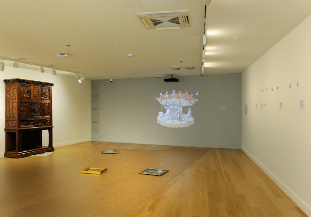 Όλα ήταν έργα του εικαστικού Χριστόφορου Κατσαδιώτη που εκτίθεντο στο επίπεδο – 1, στην παράλληλη έκθεση με τίτλο «Η Σαγήνη του Αλλόκοτου», σε επιμέλεια της διευθύντριας της Εθνικής Πινακοθήκης Συραγώς Τσιάρα, που στήθηκε με στόχο να «συνομιλήσει» με την μεγάλη έκθεση χαρακτικών του Γκόγια…
