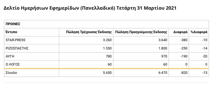 Η αλήθεια είναι ότι οι κομματικές εφημερίδες ποτέ δεν διαμόρφωναν την ατζέντα της πολιτικής αντιπαράθεσης. Μπορεί ο σκληρός πυρήνας των κομμάτων να πιστεύει το αντίθετο, η πραγματικότητα όμως τους διαψεύδει πάντα. Χαρακτηριστική περίπτωση η Αυγή. Ιστορική εφημερίδα της αριστεράς, κομματικό όργανο του ΣΥΡΙΖΑ παρ’ότι η αντιπολίτευση πάντοτε πουλάει, η Αυγή δεν είναι σε θέση να κεφαλαιοποιήσει κάτι σημαντικό στον 1,5 χρόνο κυβέρνησης Μητσοτάκη. Με πωλήσεις που έχουν πέσει κάτω από τα 800 φύλλα (πίνακας), τα περισσότερα από αυτά πηγαίνουν σε οργανισμούς και γραφεία Τύπου είναι ζήτημα εάν 200 πραγματικοί αναγνώστες πηγαίνουν στο περίπτερο για να αγοράσουν την Αυγή. Είναι τραγική η διαπίστωση για μια εφημερίδα που θέλει να επιβιώσει. Είναι δύσκολο όμως έτσι όπως το χειρίζεται η διεύθυνσή της. Δεν λέμε να μετατραπεί σε… δεξιό φύλλο. Εάν όμως δεν ανοιχτεί γενικότερα στον κεντροαριστερό χώρο και παραμείνει κομματικό όργανο του ΣΥΡΙΖΑ στο τέλος δεν θα την αγοράζουν ούτε οι οι αρθρογράφοι της. Ή μήπως, ούτως ή άλλως, δεν την αγοράζουν ποτέ;