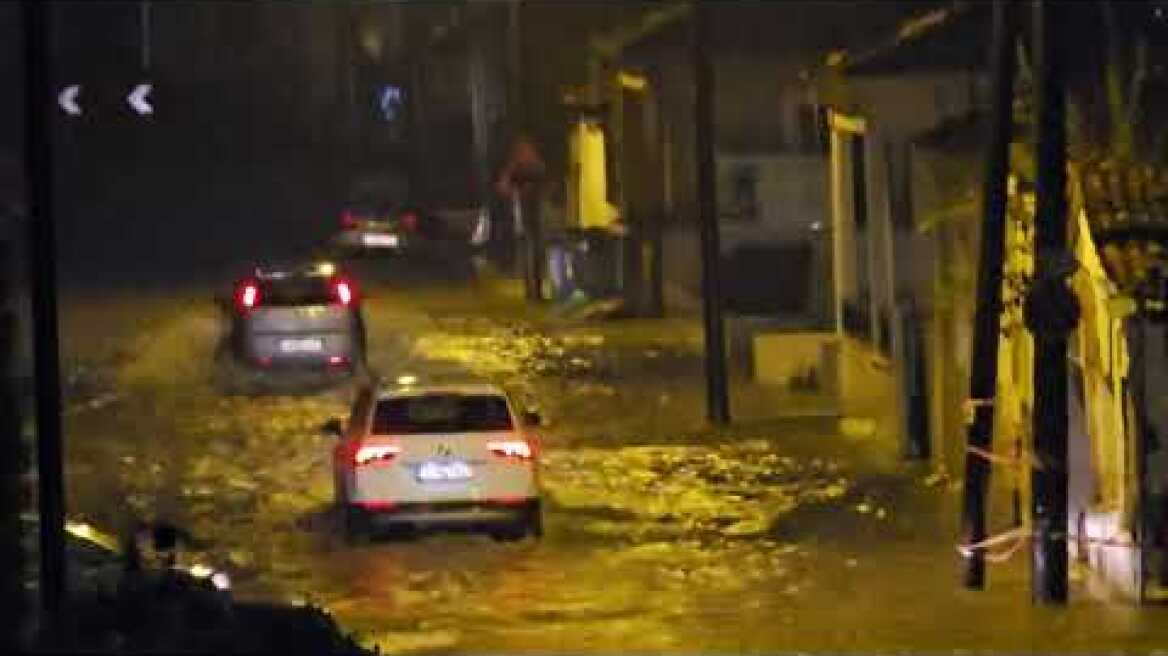 Σε ποτάμι μετατράπηκε η οδός Καλαμπάκας στην πρώτη ώρα της καταιγίδας Elias στα Τρίκαλα.