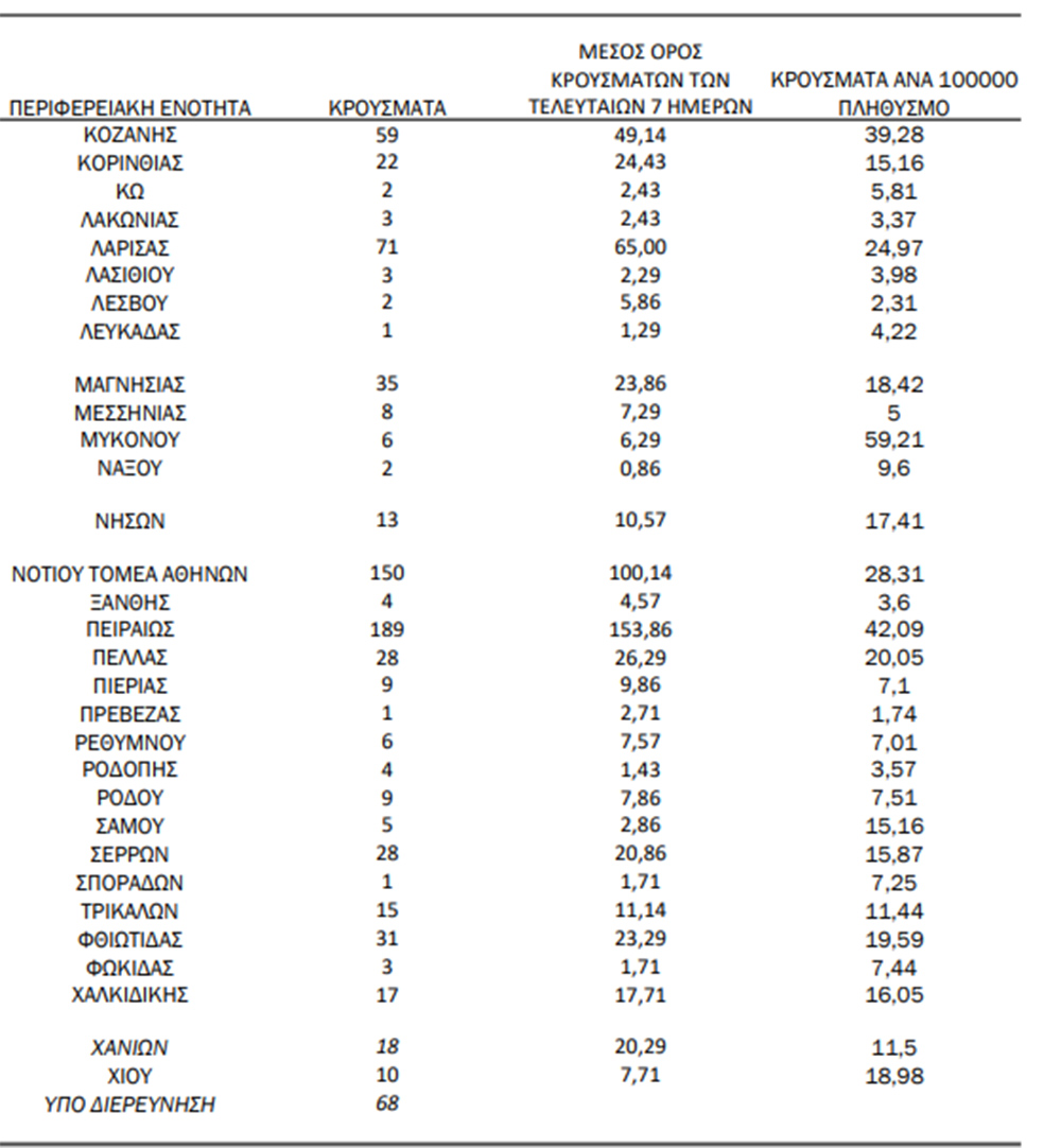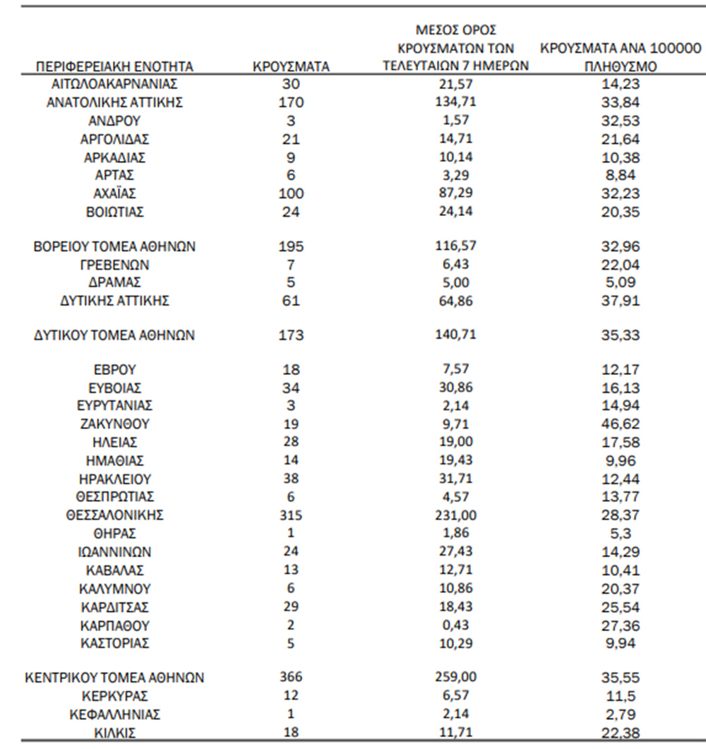 Αναλυτικότερα τα κρούσματα στις περιφερειακές ενότητες που ανήκουν στην Αττική: