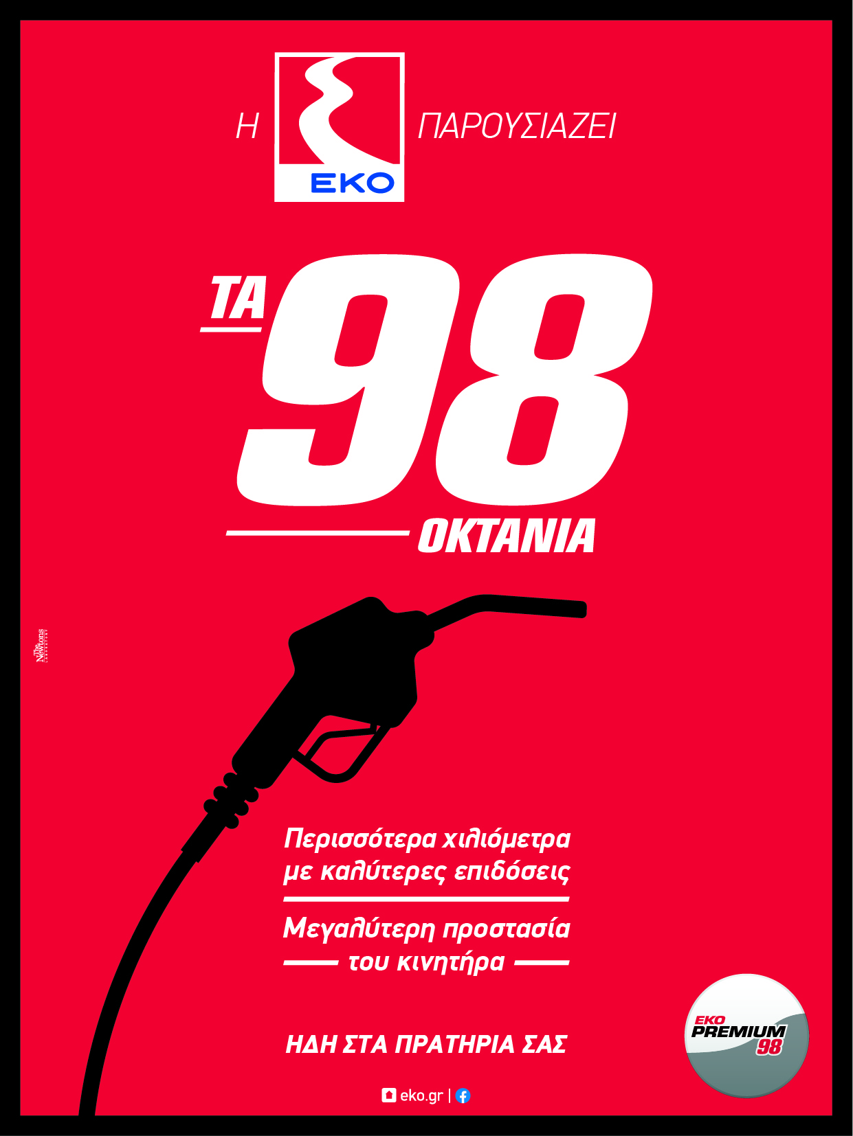 Η νέα EKO Premium 98 είναι ήδη διαθέσιμη σε επιλεγμένα πρατήρια ΕΚΟ ανά την Ελλάδα.