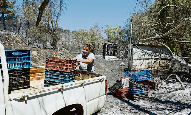 Ας μην ξεχνάμε ότι δεν είναι μόνο η κατοικημένη πλευρά της Πεντέλης που κάηκε από την αβελτηρία των «αρίστων». Η φωτιά ξεκίνησε από τον Βαρνάβα και πέρασε μέσα από τον λαχανόκηπο της Αττικής, όπως ονομάζεται η ευρύτερη περιοχή του Μαραθώνα. Πρόκειται για απέραντο περιβόλι με μαζικές καλλιέργειες αμπελιών, ελιών, δημητριακών, φρούτων και λαχανικών. Είναι χαρακτηριστικό ότι στον Μαραθώνα καλλιεργείται περίπου το 20% της συνολικής ετήσιας εγχώριας παραγωγής μαρουλιού… Μια σύντομη βόλτα στις καμένες περιοχές καταδεικνύει το μέγεθος της καταστροφής σε θερμοκήπια, φυτώρια, χωράφια καλλιέργειας οπωροκηπευτικών κ.λπ. Τι σημαίνει όλη αυτή η καταστροφή από την ανικανότητα του «επιτελικού κράτους» να προβεί σε άμεση, εντός μισάωρου κατάσβεση; Πολύ απλά, ενεργοποίηση του νόμου της προσφοράς και της ζήτησης…