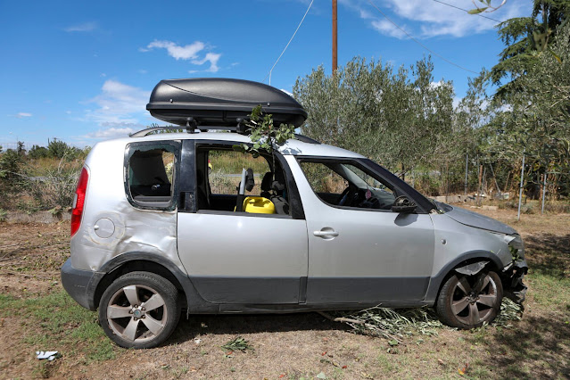Το ατύχημα συνέβη γύρω στις 11 το πρωί της Τετάρτης σε δρόμο που συνδέει την εθνική οδό Θεσσαλονίκης – Πολυγύρου με την Περαία, κοντά σε ιδιωτικό ΚΤΕΟ. Το όχημα σταμάτησε σε αυλή με ελιές.