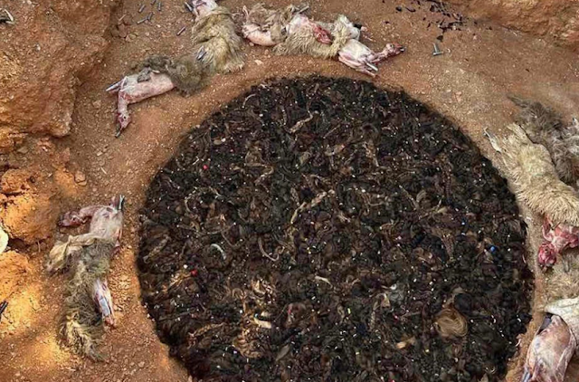 Μία μακάβρια εικόνα με 11 νεκρά αρνιά πεταμένα σε λάκκο, δίπλα σε ένα κυκλικό σχέδιο, που οι γείτονες φαίνεται να το μπέρδεψαν με παγανιστικό …σύμβολο, καταγράφηκε προχθές δίπλα από το μουσείο λαϊκής και σύγχρονης τέχνης στην Παιανία, σε παρακείμενο οικόπεδο. Όπως αναφέρει το ρεπορτάζ στο protothema.gr πλησίον των νεκρών ζώων κείτονταν γδαρμένες προβιές και η δυσοσμία, σύμφωνα με τους κατοίκους της περιοχής, ήταν τόσο έντονη «που βρώμαγε όλο το οικοδομικό τετράγωνο».