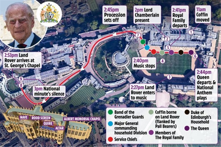 Η κηδεία του πρίγκιπα Φιλίππου της Βρετανίας, του συζύγου της βασίλισσας Ελισάβετ Β’ ο οποίος απεβίωσε στις 9 Απριλίου σε ηλικία 99 ετών, θα τελεσθεί σήμερα στο παρεκκλήσι του Πύργου του Ουίνδσορ.
