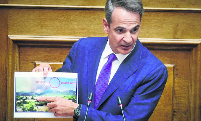Γι’ αυτό και ο πολιτικός προϊστάµενος του κάθε Αδωνη και του κάθε Βορίδη ή Σκέρτσου ή Γεραπετρίτη ή όπως τους λένε όλους αυτούς που το πάνε το γράµµα του νεοφιλελευθερισµού, που έχει σχέση µε την ελευθερία όση και ο φάντης µε το ρετσινόλαδο, ο κάθε Μητσοτάκης δηλαδή, εµφανίζεται στη Βουλή ενώ ο Εβρος καίγεται για 13η ηµέρα και το µόνο που έχει να πει είναι ότι πρέπει να διδαχθούµε από τα λάθη µας… όλοι, σαν όλοι µαζί να έχουµε την ευθύνη.