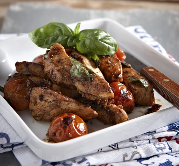 Τρυφερό κοτόπουλο, ζουμερά ντοματίνια και βασιλικός. Με μία σαλατίτσα δίπλα τους έχετε μέσα σε λίγα λεπτά ένα χορταστικό γεύμα. Δείτε τη συνταγή ΕΔΩ