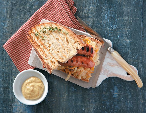 Λαχταριστό σάντουιτς, μπουκιά και άρωμα Ελλάδας! Η ζεστή λαχανοσαλάτα και η μουστάρδα είναι από τα καλύτερα συνοδευτικά για τα λουκάνικα. Δείτε τη συνταγή ΕΔΩ